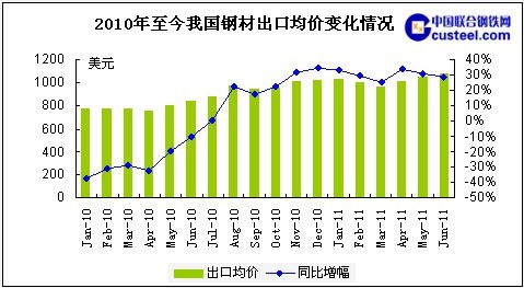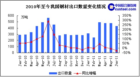 從目前國內外發展形勢來看,7-8月份出口市場仍不太看好,預計鋼材出口形勢好轉將有可能在三季度末也就是9月份以后體現。以熱卷為例,本網調查結果顯示,17家主流熱卷鋼廠7月計劃出口量為22.3萬噸,與上月相比減少了8.3萬噸,環比下降了27.1%,降幅比上月擴大10.9個百分點。