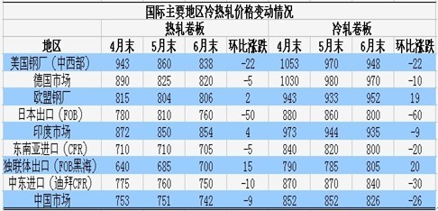 二是近期國際市場價格特別是扁平材下滑仍比較明顯,進一步削弱我國鋼材產品出口競爭力。5-6月國際主要地區冷熱軋價格持續下跌,特別是日本地區內需因地震影響下降后,加大出口量,導致出口報價大幅下滑,如熱卷出口FOB價格月環比下跌6.2%。再加上獨聯體、印度等地區低價資源沖擊,整體出口市場表現偏弱。